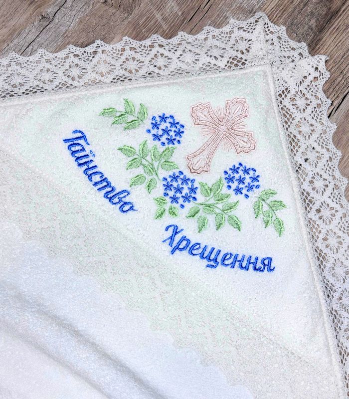 Дизайн прикрашений акуратною вишивкою з хрестом і квітковими елементами у спокійній, світлій кольоровій гамі, що символізує чистоту, віру та благословення. Крижма поєднує практичність і стриману урочистість, тому стане не лише необхідним аксесуаром для обряду, а й пам’ятною річчю на багато років.